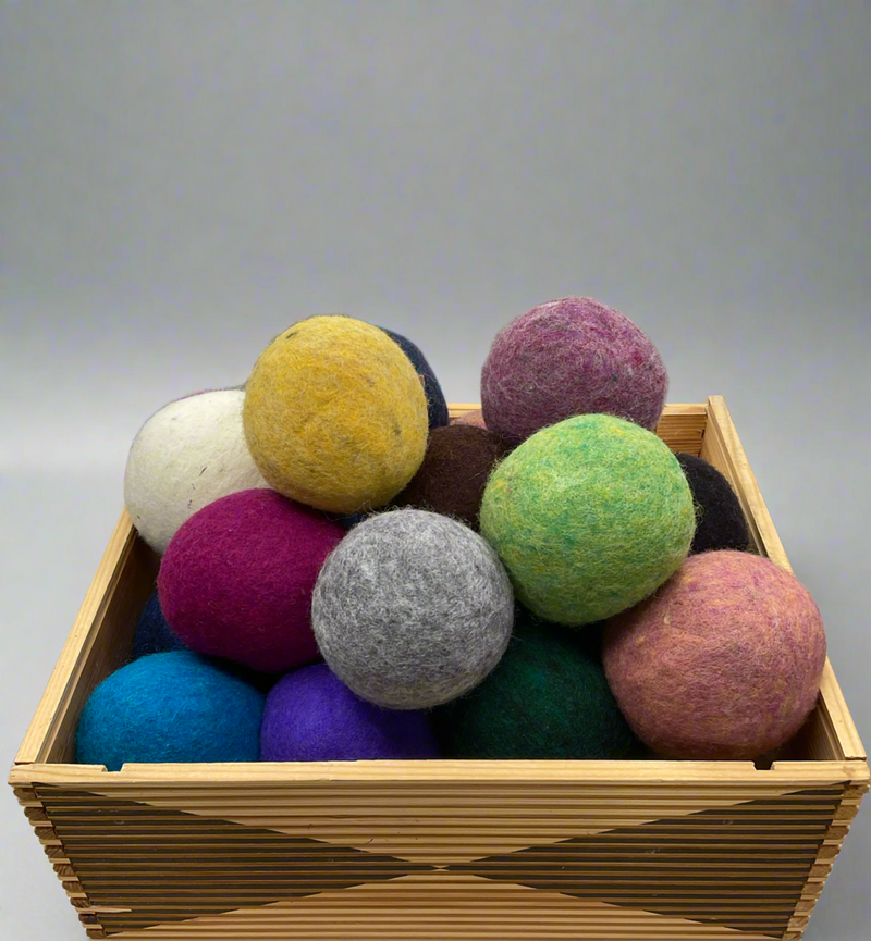 100% Handcrafted from Canadian wool in Calgary Alberta, these XL wool dryer balls come in various colours that will not run onto your clothing.