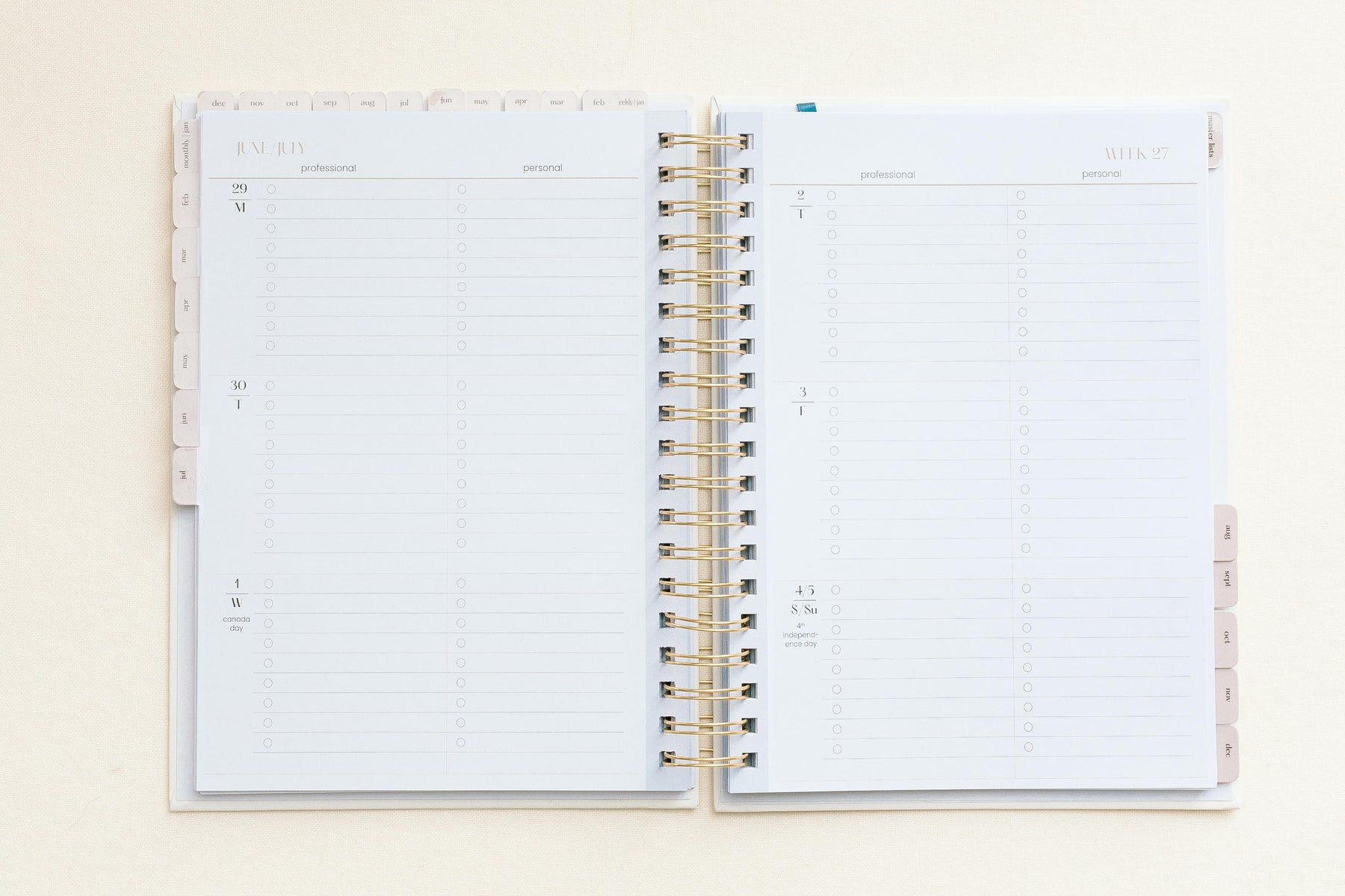 - Monthly spreads for big-picture planning