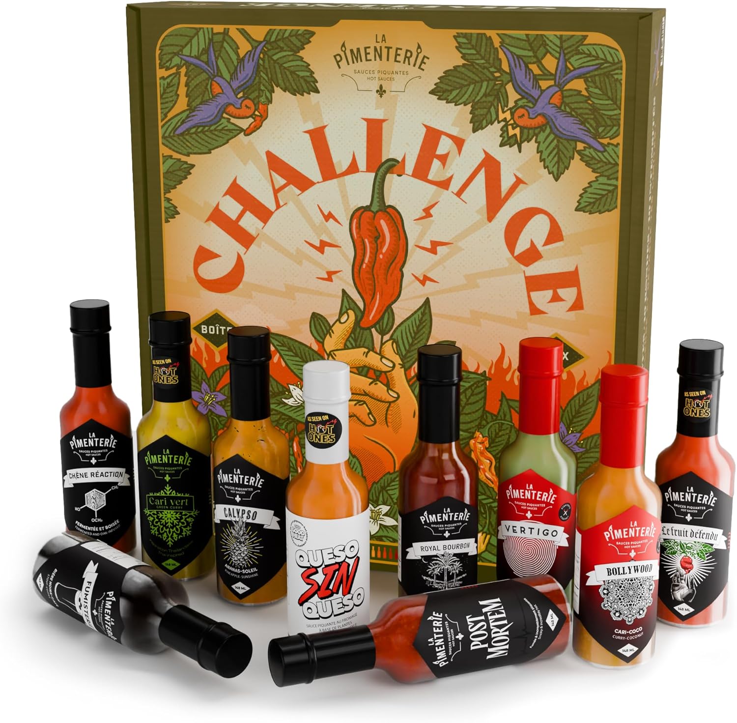 Turn up the heat with the Challenge Box by La Pimenterie — a curated lineup of 10 gourmet hot sauces, each crafted in Montreal and designed to increase in intensity. From mild heat to blazing fire, this tasting experience is perfect for game nights, friendly competitions, or that one friend who swears they “can handle anything.”Each sauce highlights La Pimenterie’s signature style: bold flavour first, balanced heat second, and premium ingredients sourced from local Quebec growers. Whether you’re a chilihead or a curious beginner, this box delivers a journey through spice, flavour, and pure thrill.