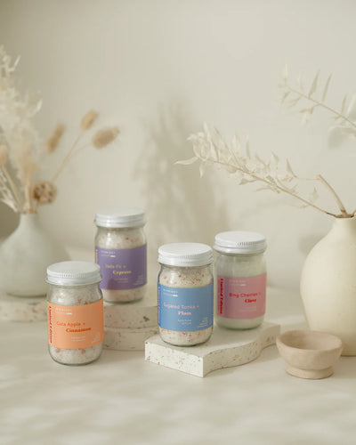 Ingredients: Magnesium Sulphate (Epsom Salt), Sodium Methyl Cocoyl Taurate (Coconut Derived), Tapioca Starch, Maris Sal (Dead Sea Salt), Decyl Glucoside (Coconut Derived), Sodium Bicarbonate (Baking Soda), Illite (Yellow Clay), Potassium Bitartrate (Cream of Tartar), Cocos nucifera (Coconut) Milk Powder, Allantoin, Simmondsia chinensis (Jojoba) Seed Oil, Anthemis nobilis (Roman Chamomile) Flower Oil, Tocopherol