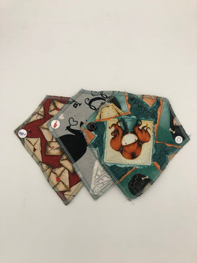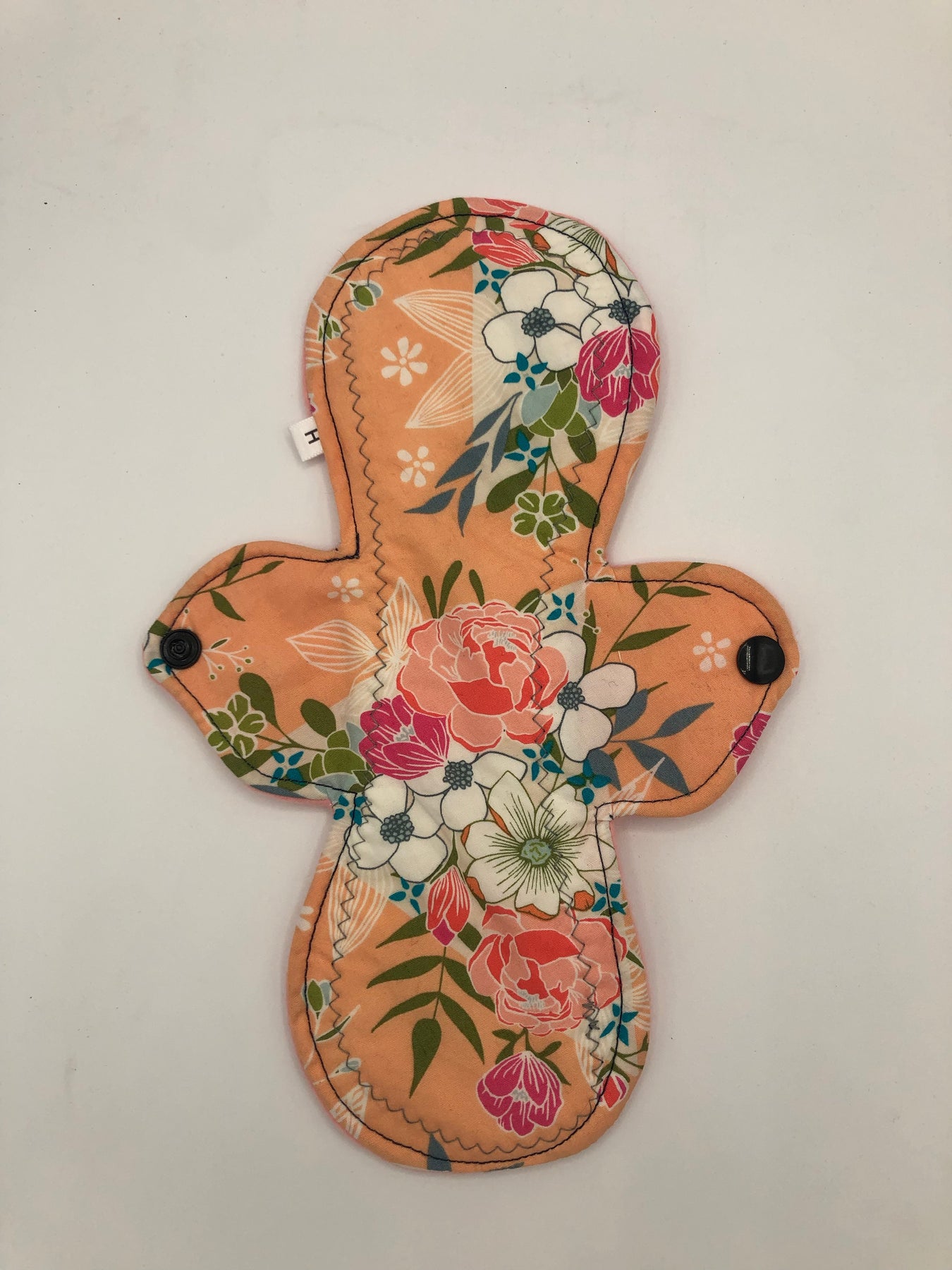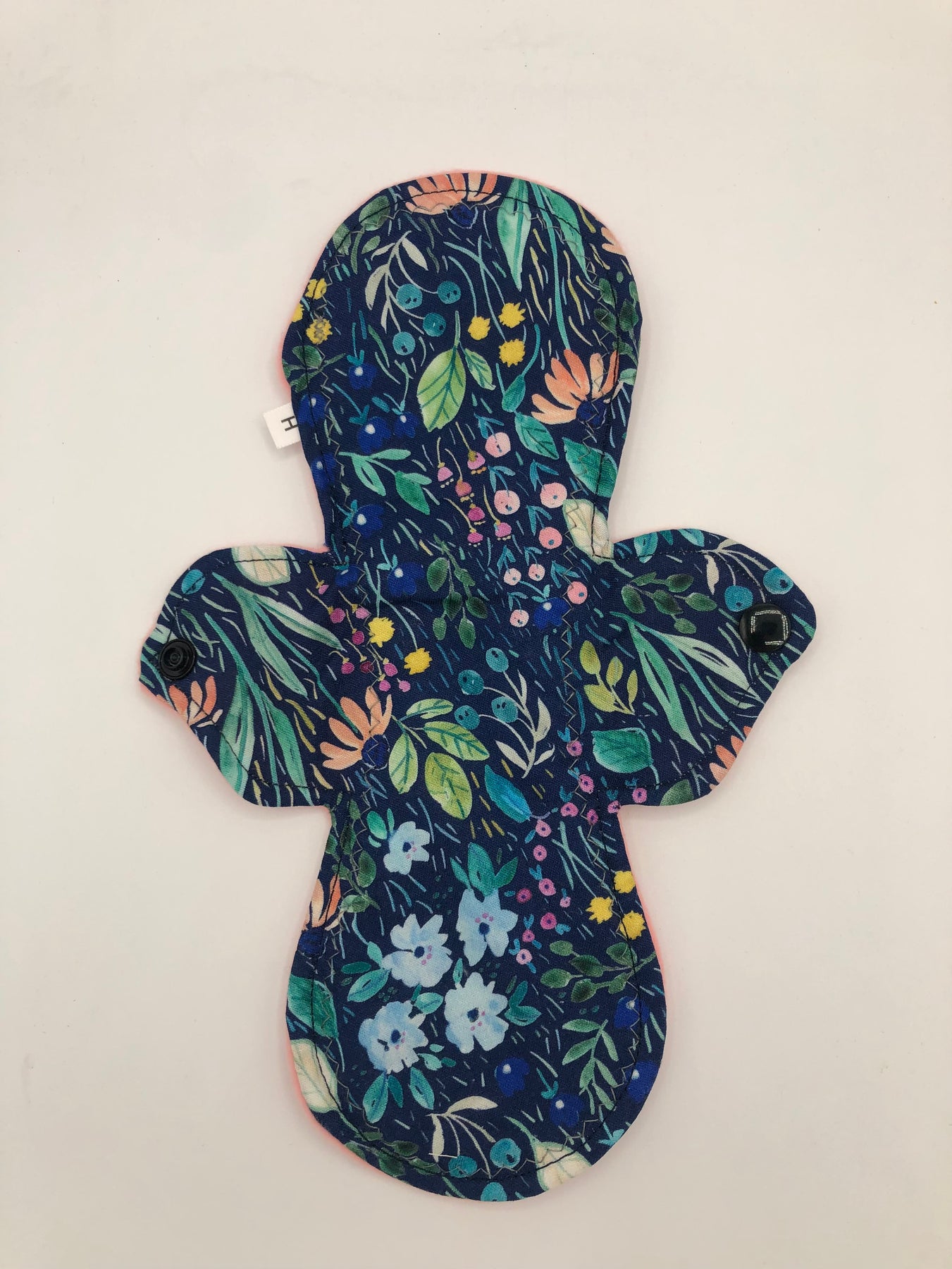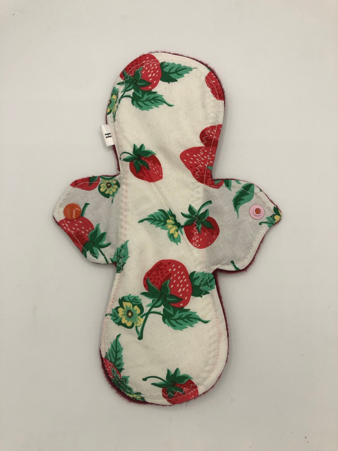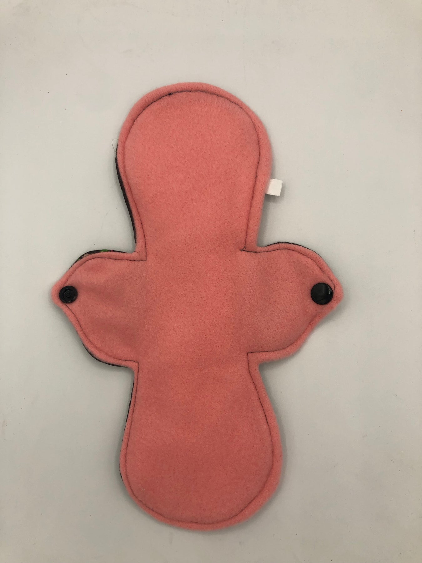 Heavy absorbency reusable pads with a cotton topper, organic bamboo core and water resistant fleece bottom with a snap closure.