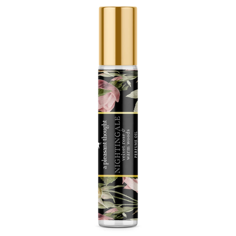 Nightingale: Deep, rich floral with a soft amber finish. Indulge your skin to the mysterious beauty of Nightingale, our velvet rose and warm woods-scented perfume oil. Floral.