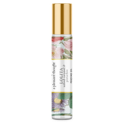 Lolita: Nutty and creamy with a light, floral finish. Indulge your skin to the sensual and warm lures of Lolita, our pistachio, heliotrope, and salted caramel-scented perfume oil. Soft oriental.